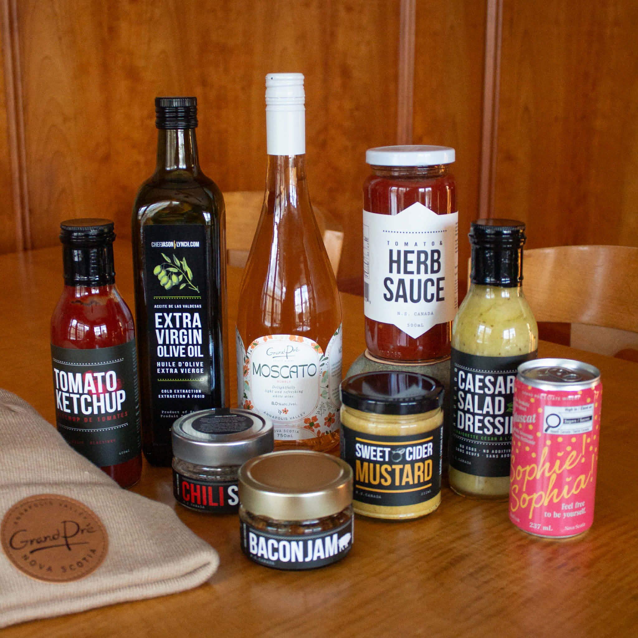 Offert par Grand Pré Wines / Le Caveau, ce prix célèbre les saveurs de notre région — parfait pour offrir en cadeau ou pour se faire plaisir à la maison. Vous y trouverez un délicieux assortiment de produits essentiels et de gourmandises, notamment de l’huile d’olive, vinaigrette, ketchup, sel au chili, sauce aux herbes, moutarde et confiture de bacon, accompagné d’une bouteille de Moscato Grand Pré, de deux canettes de boisson pétillante sans alcool Sophie! Sophia! et d’une tuque chaleureuse pour compléter le tout.